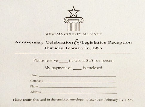 Sonoma County Alliance Invitation for the annual reception of this 40-year education and advocacy group that promotes the welfare of Sonoma County.